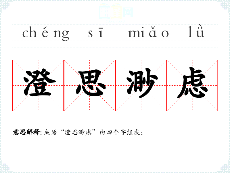 - 澄:清澈、明亮,通常用来形容心思清晰。