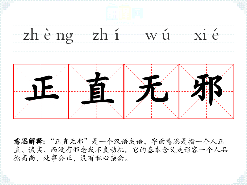 “正直无邪”是一个汉语成语,字面意思是指一个人正直、诚实,而没有邪念或不良动机。它的基本含义是形容一个人品德高尚,处事公正,没有私心杂念。