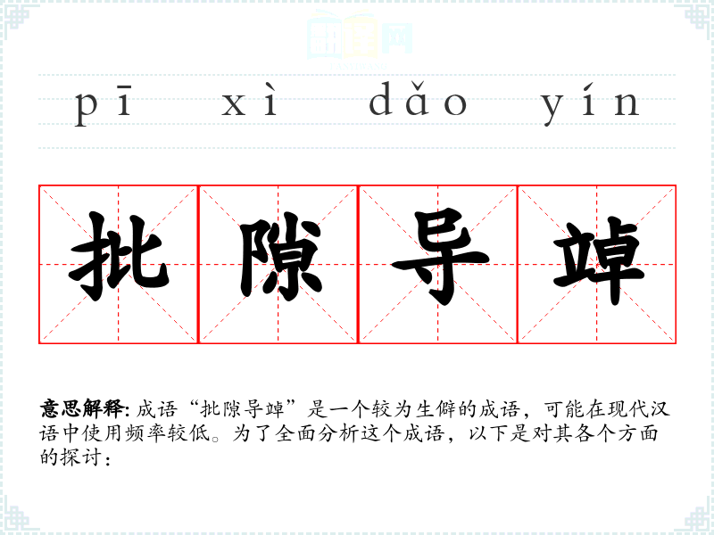 成语“批隙导竨”是一个较为生僻的成语,可能在现代汉语中使用频率较低。为了全面分析这个成语,以下是对其各个方面的探讨: