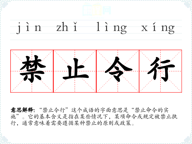 “禁止令行”这个成语的字面意思是“禁止命令的实施”。它的基本含义是指在某些情况下,某项命令或规定被禁止执行,通常意味着需要遵循某种禁止的原则或政策。