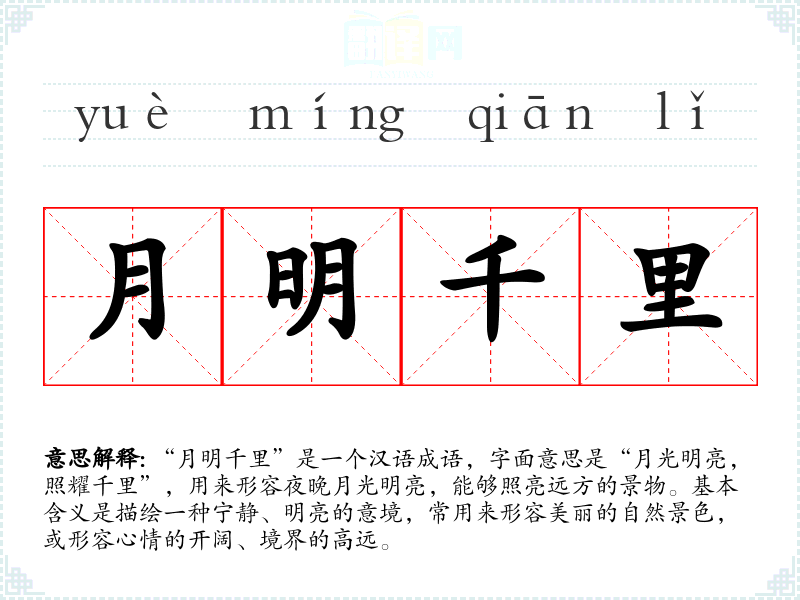 - 反义成语:如“黑暗无光”,指没有光明的状态,与“月明千里”形成鲜明对比。