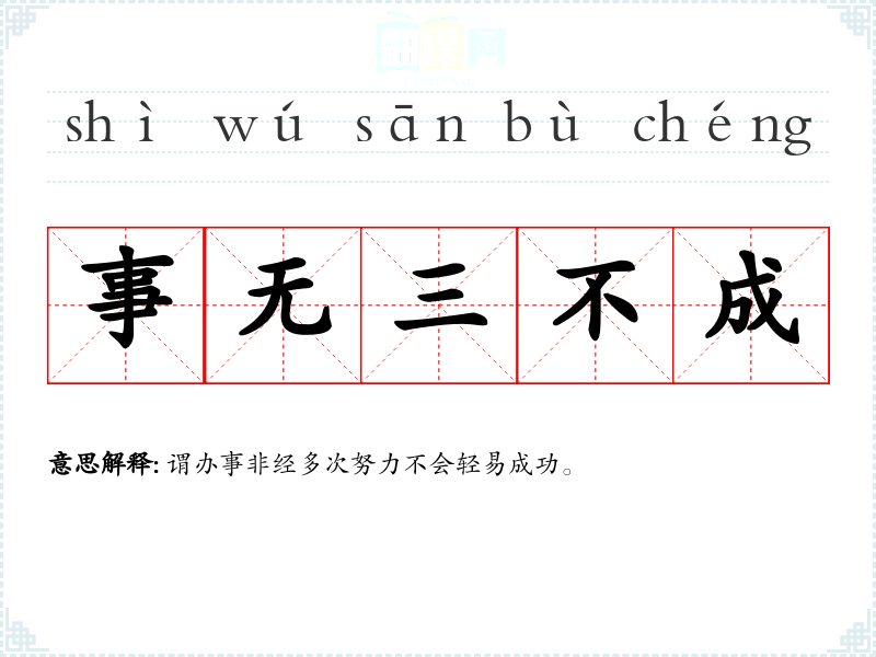 | 事不过三 | 指同样的事不宜连作三次。 |