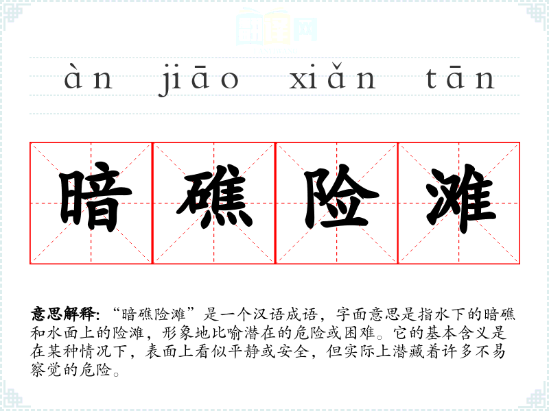 - 日常对话:朋友之间谈论工作或生活中的困难时,可能会提到“暗礁险滩”来形容某种潜在的风险。