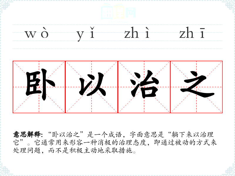 “卧以治之”是一个成语,字面意思是“躺下来以治理它”。它通常用来形容一种消极的治理态度,即通过被动的方式来处理问题,而不是积极主动地采取措施。