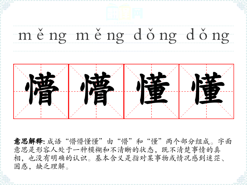 | 懵懵懂懂 | 糊里糊涂,什么也不知道。 |