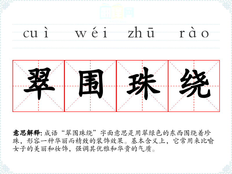 “翠围珠绕”给人一种精致、典雅的感觉,联想到了古典美、优雅女性等意象。它不仅强调外在的美丽,也传达了一种内在的气质与文化修养。