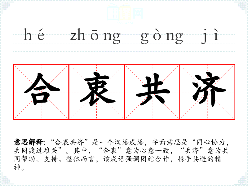 “合衷共济”是一个汉语成语,字面意思是“同心协力,共同渡过难关”。其中,“合衷”意为心意一致,“共济”意为共同帮助、支持。整体而言,该成语强调团结合作,携手共进的精神。