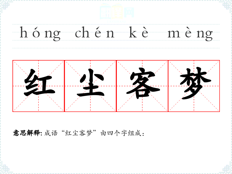 因此,“红尘客梦”字面意思是指在喧嚣的世俗生活中,漂泊者的梦境和幻想,隐含着对人生的思考和对理想的追求。