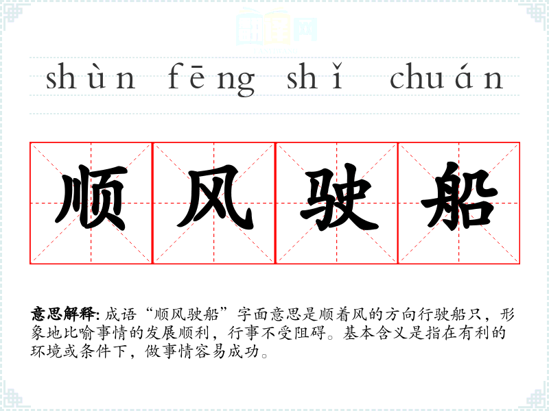 “顺风驶船”的历史背景可以追溯到古代航海文化。船只在顺风的情况下行驶,速度快且稳定,因此这个成语体现了顺利、轻松的意思。虽然具体出处不详,但类似的表述可以在古代文献中找到,反映了当时人民对于自然力量的理解和利用。