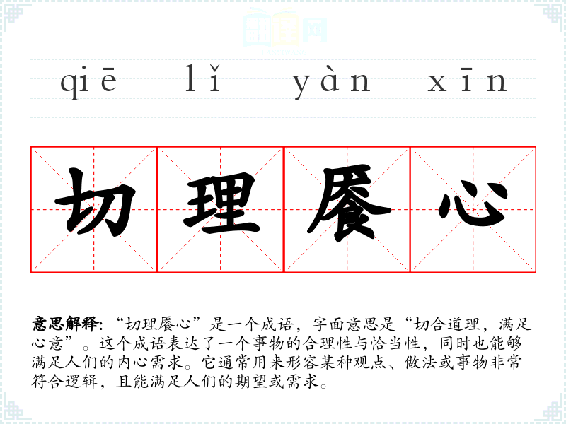 | 切理餍心 | 指切合事理而令人心满意足。同“切理厌心”。 |