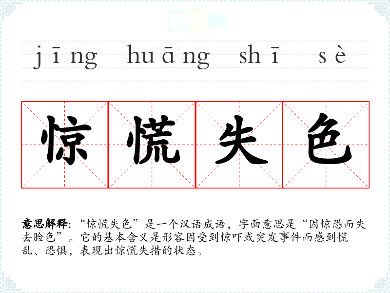 “惊慌失色”是一个汉语成语,字面意思是“因惊恐而失去脸色”。它的基本含义是形容因受到惊吓或突发**而感到慌乱、恐惧,表现出惊慌失措的状态。