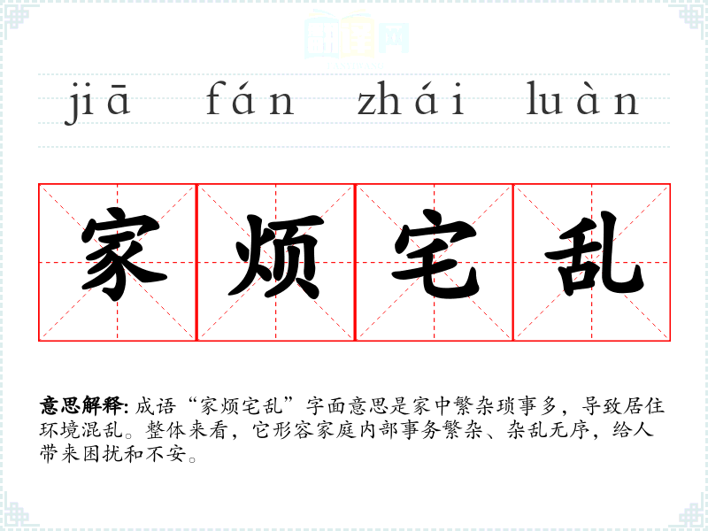 “家烦宅乱”让我联想到家庭生活中的琐碎事务,常常让人感到疲惫和烦恼。它也体现了一种对家庭和谐的期盼,提醒我们在忙碌的生活中不要忽视家庭的管理与维护。