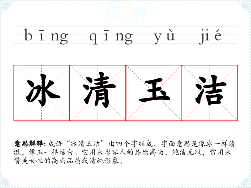 - 文学作品:在古典诗词中,常用“冰清玉洁”形容女子的美丽和高尚品质,如白居易的《白马寺》就提到过类似的意象。