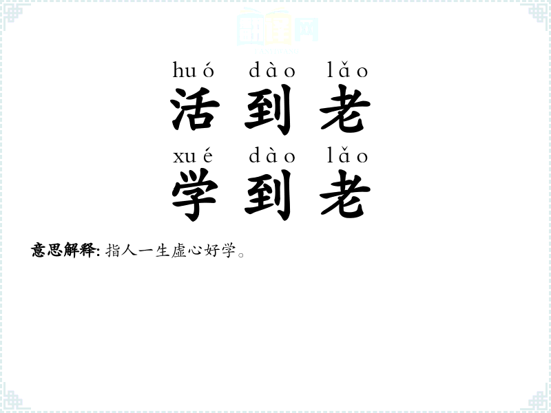 | 活到老,学到老 | 指人一生虚心好学。 |