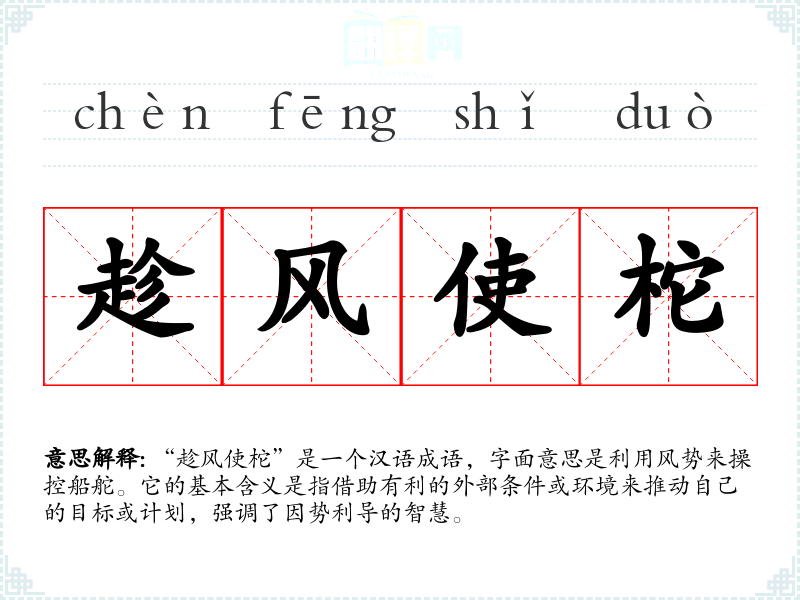 “趁风使柁”是一个汉语成语,字面意思是利用风势来操控船舵。它的基本含义是指借助有利的外部条件或环境来推动自己的目标或计划,强调了因势利导的智慧。