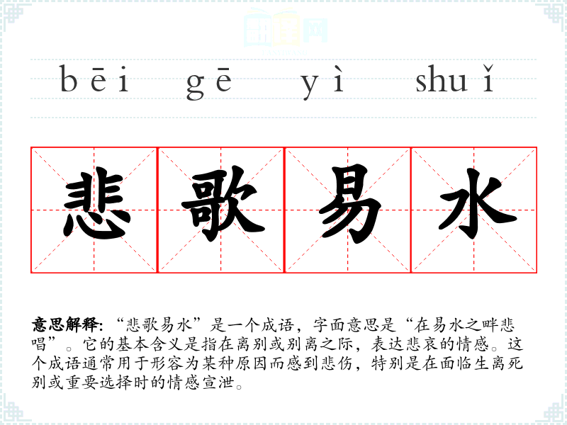 - 反义成语:欢天喜地、乐观向上、喜气洋洋。与“悲歌易水”所表达的悲伤情感形成鲜明对比,强调快乐与轻松的情绪。
