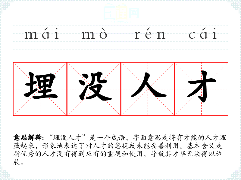 | 埋没人才 | 不重视有才能的人,让其不能发挥作用。 |