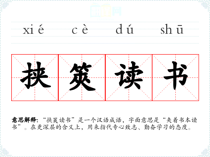 “挟筴读书”是一个汉语成语,字面意思是“夹着书本读书”。在更深层的含义上,用来指代专心致志、勤奋学*的态度。