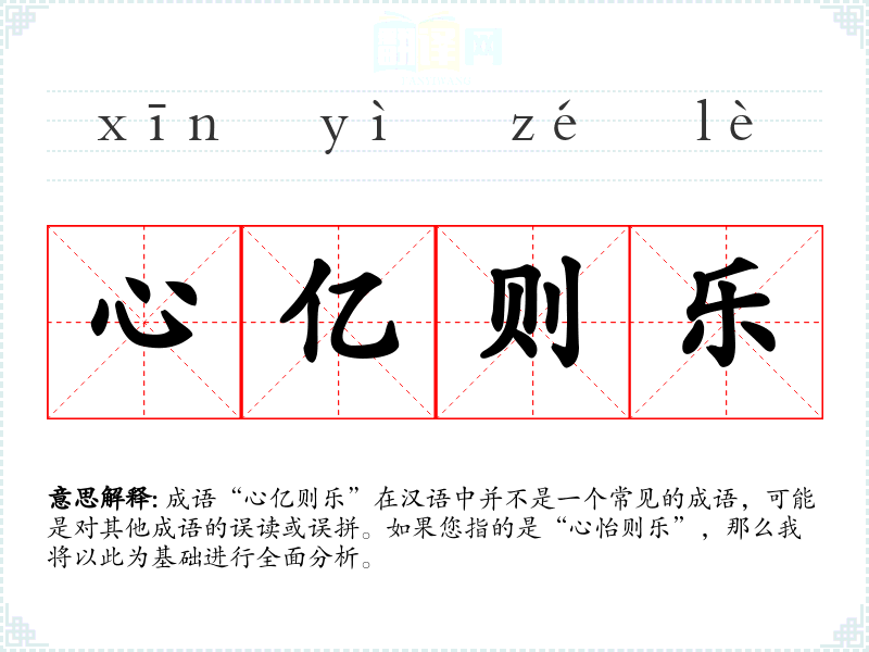 成语“心亿则乐”在汉语中并不是一个常见的成语,可能是对其他成语的误读或误拼。如果您指的是“心怡则乐”,那么我将以此为基础进行全面分析。
