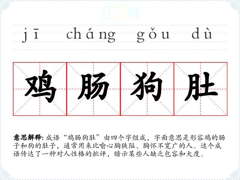 在英语中,可以用“small-minded”来表达类似的意思,但这一表达可能不如“鸡肠狗肚”直接生动。不同文化中对心胸狭窄的描述常常反映出各自的价值观。