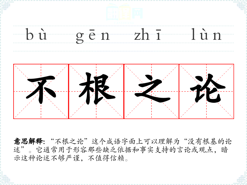 - 文学作品:在小说中,角色可能会引用“不根之论”来批评对手的毫无根据的观点。