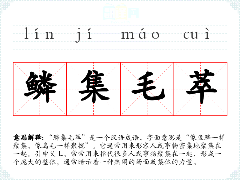 - 日常对话:在谈论某个活动或**的参与人数时,可以用“鳞集毛萃”来形容。