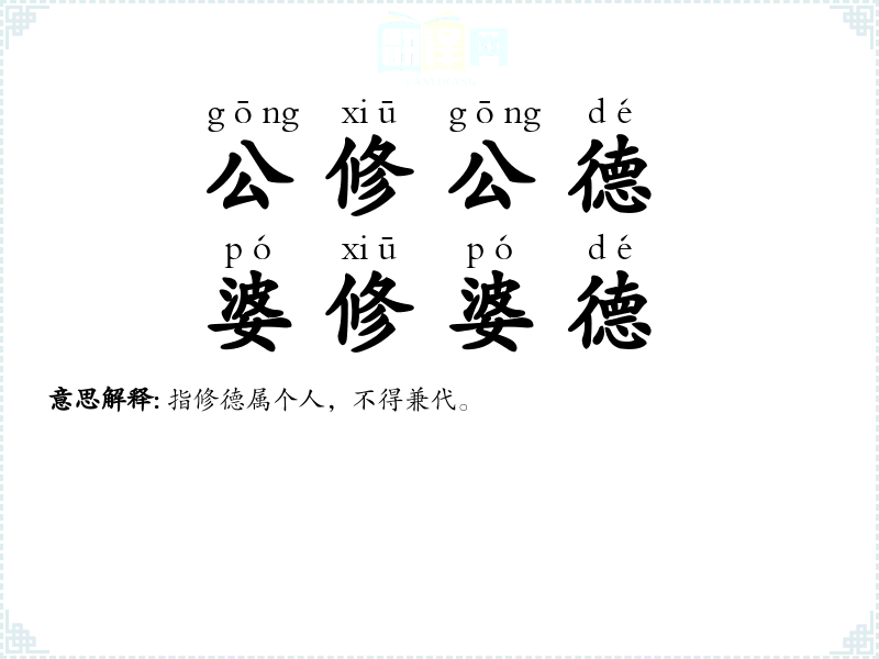 | 公修公德,婆修婆德 | 指修德属个人,不得兼代。 |