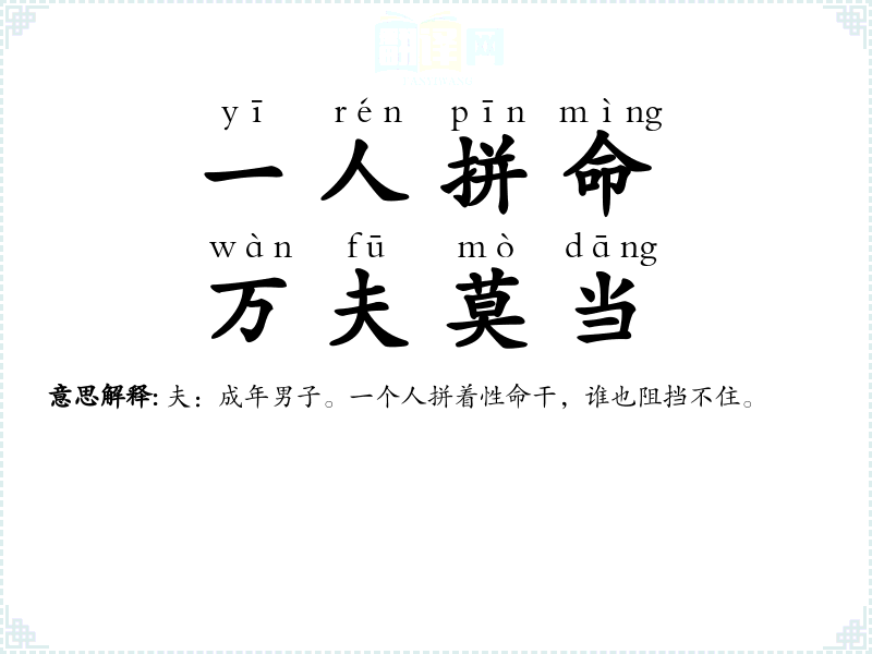 夫:成年男子。一个人拼着性命干,谁也阻挡不住。 |