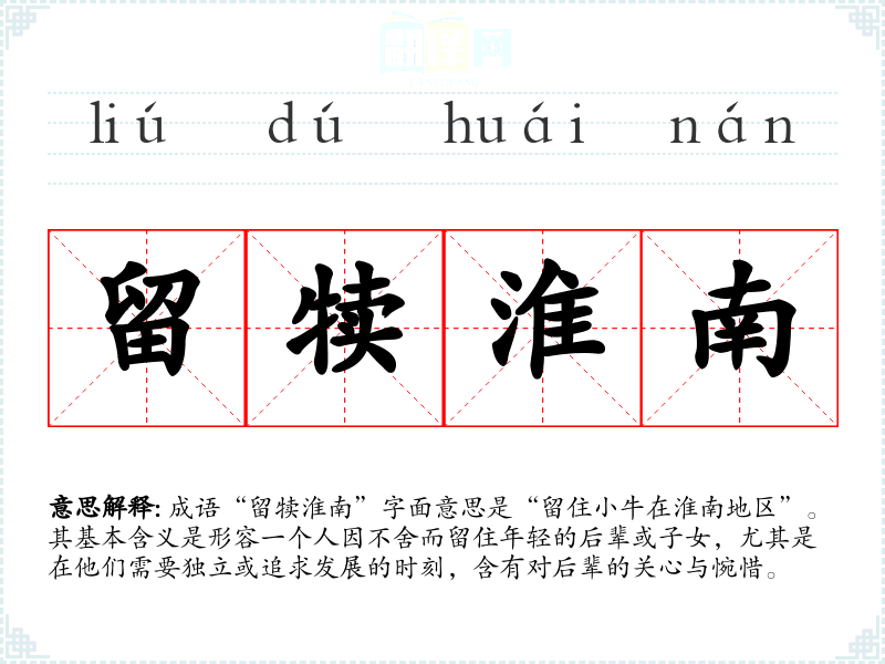 成语“留犊淮南”字面意思是“留住小牛在淮南地区”。其基本含义是形容一个人因不舍而留住年轻的后辈或子女,尤其是在他们需要独立或追求发展的时刻,含有对后辈的关心与惋惜。