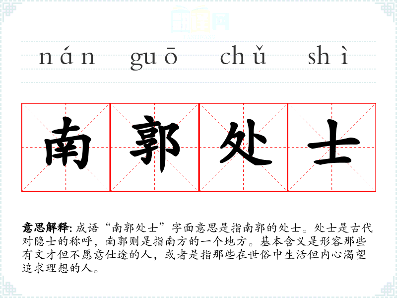 南郭处士 比喻无真正的才干而混在行家里面充数的人。同“滥竽充数”。