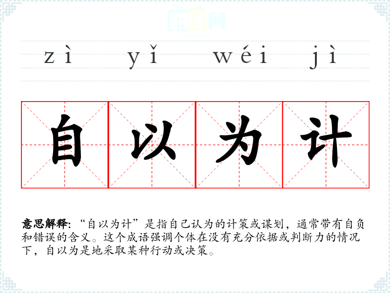 “自以为计”是指自己认为的计策或谋划,通常带有自负和错误的含义。这个成语强调个体在没有充分依据或判断力的情况下,自以为是地采取某种行动或决策。