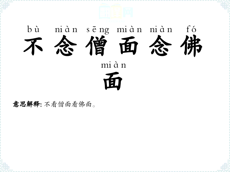 僧:和尚。和尚来了要看在佛的面子招待他。比喻看有关人士的面子对待来者。 |