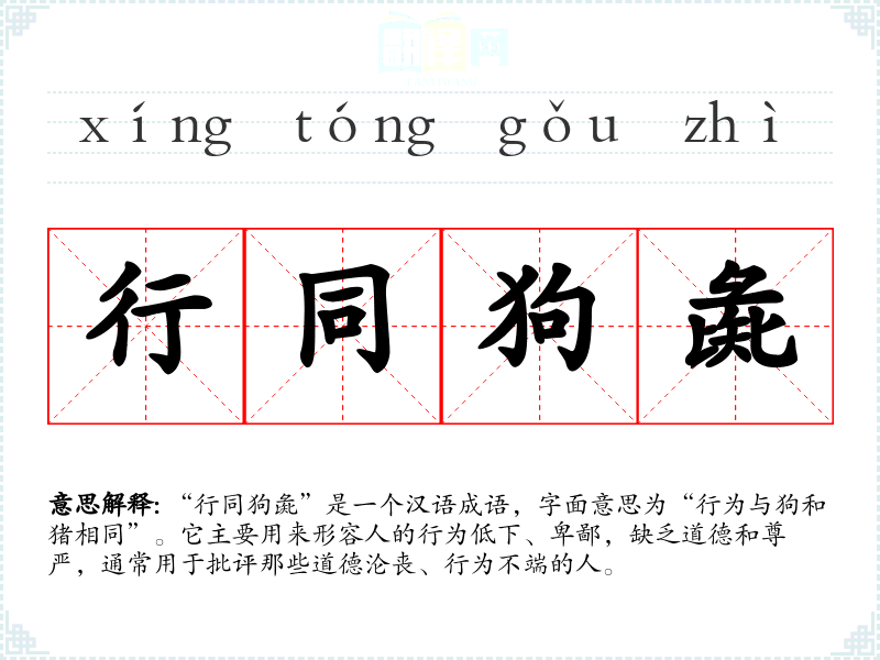 | 行同狗彘 | 旧时指人无耻,行为和猪狗一样。 |