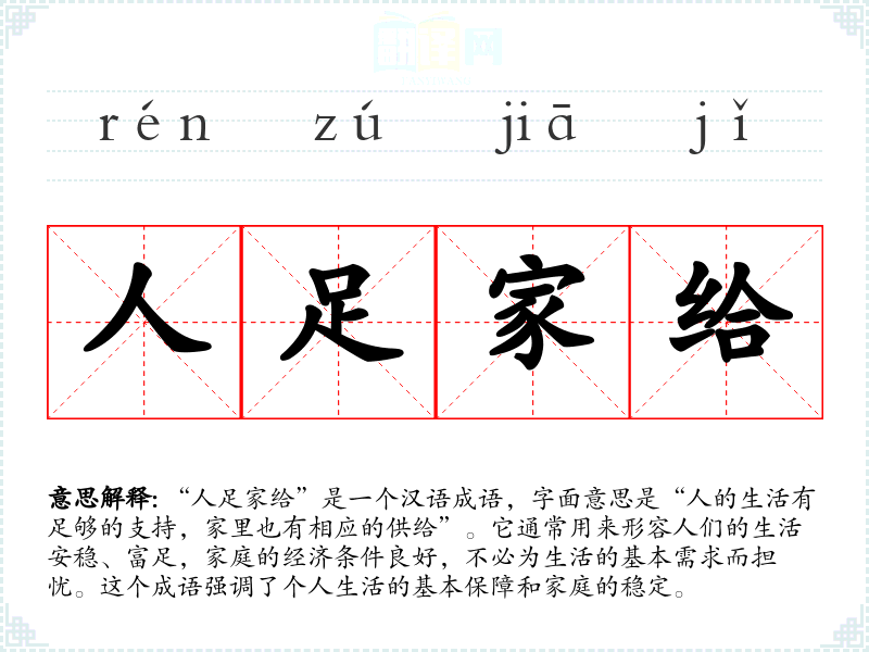 在**传统文化中,家庭的富足和个人的安定是人们追求的理想生活状态。这个成语反映了对物质生活保障的重视。在现代社会,随着经济的发展,人们对“人足家给”的追求依然存在,尤其是在讨论社会保障、收入分配等问题时,这个成语的使用更为普遍。