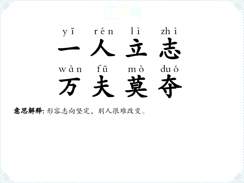 心志:抱负,志向;夺:转移。形容意志坚定难移。 |
