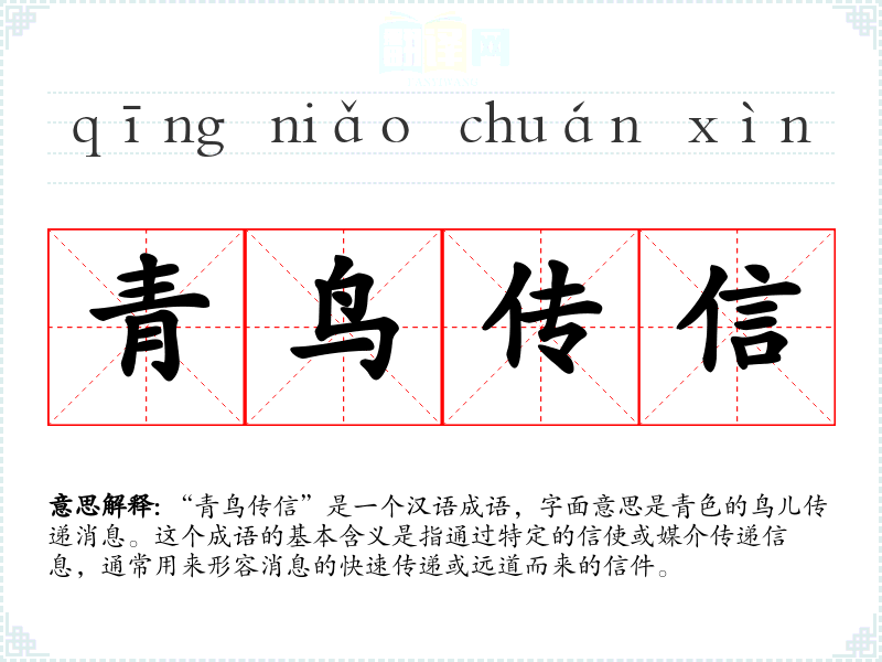 - 日常对话:可以在朋友之间谈论信息的快速传递时使用,比如说“我通过青鸟传信告诉你这个好消息”。