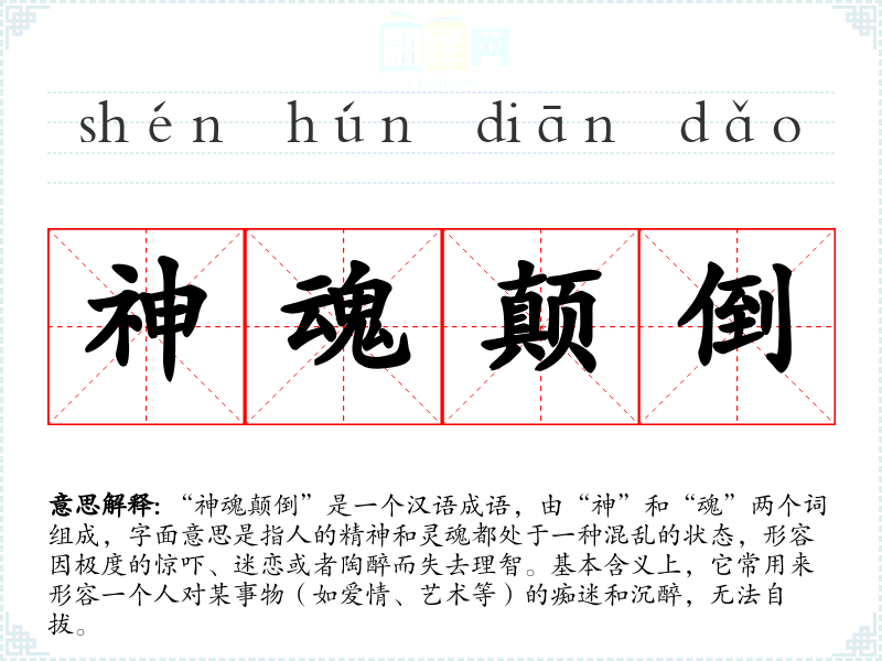 “神魂颠倒”最早见于《红楼梦》中,书中描绘了人物因爱情而神魂颠倒的情景。这一成语的形成与古代哲学思想有关,古人认为“神”和“魂”是人类情感和精神活动的重要组成部分,二者的失衡会导致个体的精神状态失常。