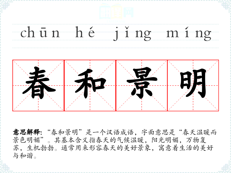 | 春和景明 | 春光和煦,风景鲜明艳丽。 |