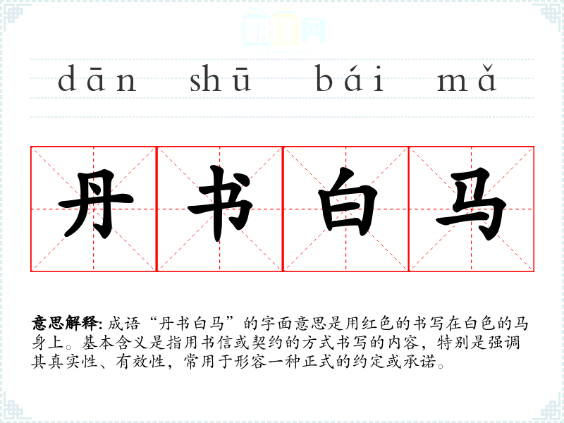 - 日常对话:可以用来强调某个承诺的正式性,例如“这份合同就是我们的丹书白马,必须遵守。”