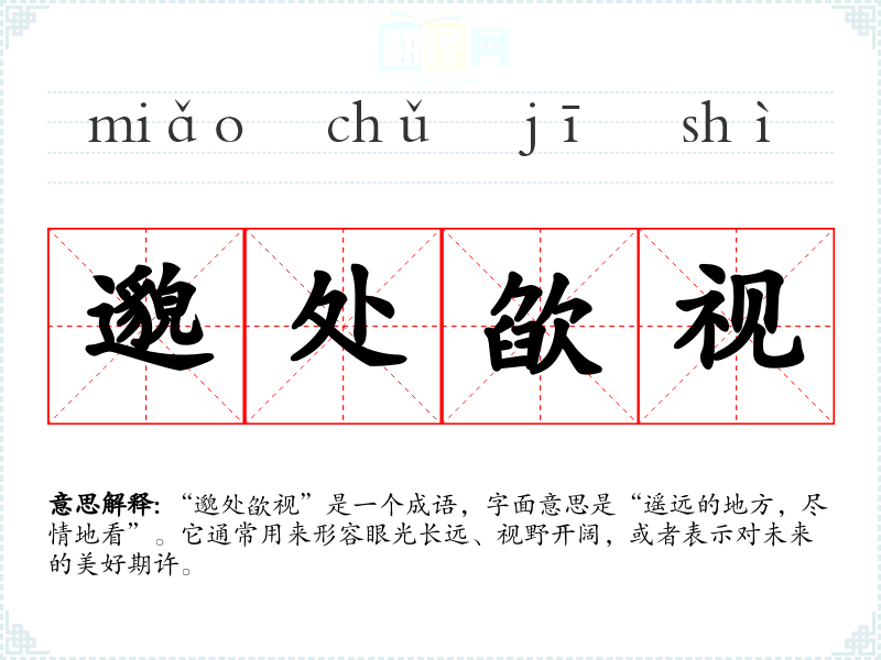 “邈处欿视”是一个成语,字面意思是“遥远的地方,尽情地看”。它通常用来形容眼光长远、视野开阔,或者表示对未来的美好期许。