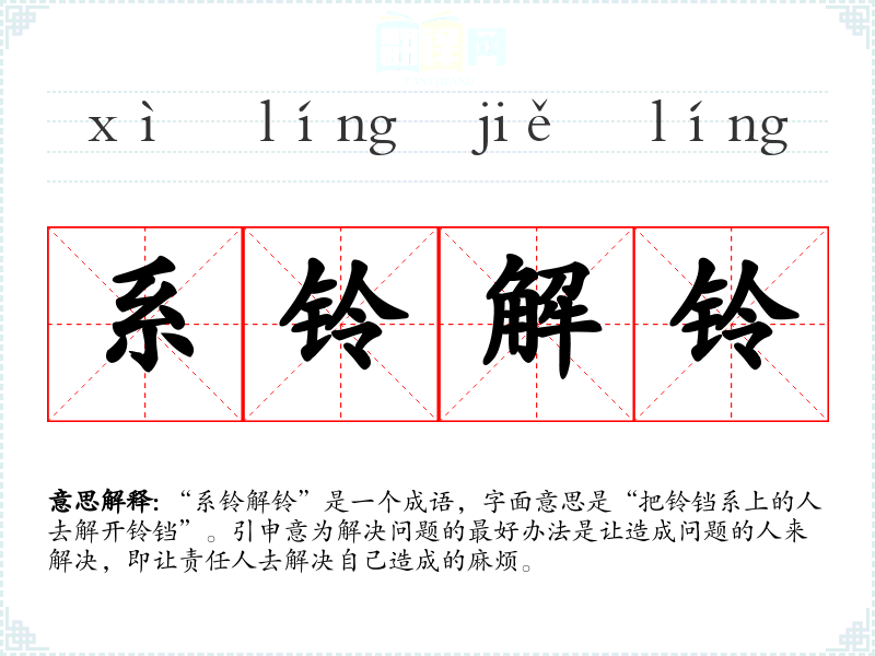 解铃系铃 比喻谁惹出来的麻烦,还得由谁去解决。