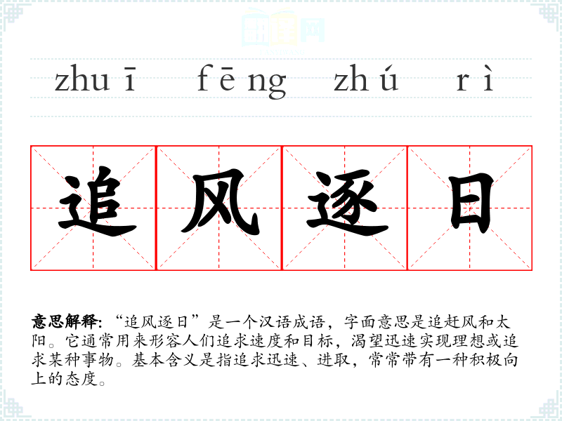 “追风逐日”是一个汉语成语,字面意思是追赶风和太阳。它通常用来形容人们追求速度和目标,渴望迅速实现理想或追求某种事物。基本含义是指追求迅速、进取,常常带有一种积极向上的态度。