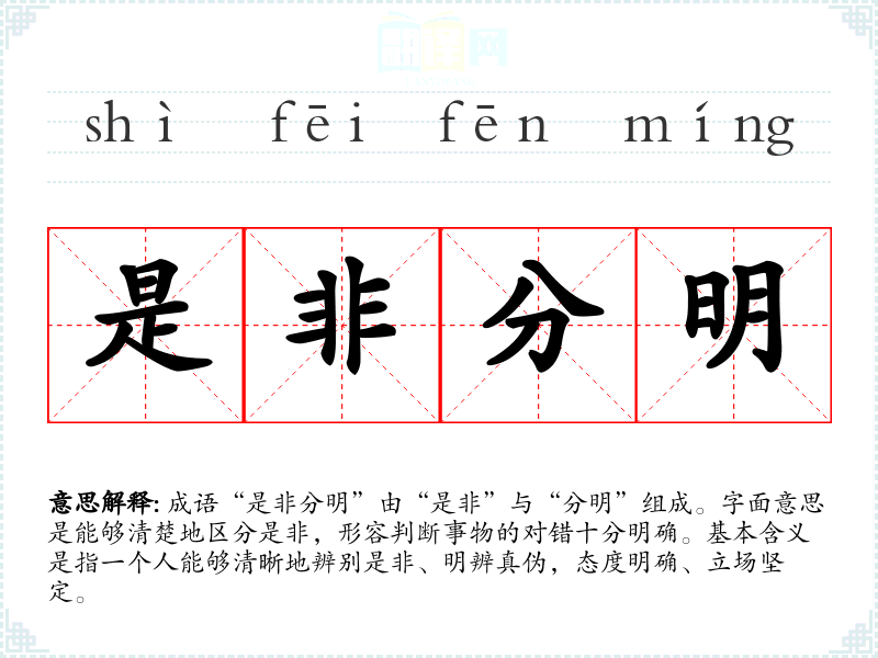 - 演讲:在公共演讲中,用于强调道德判断的重要性,如“在面对复杂的问题时,我们需要保持是非分明的态度。”