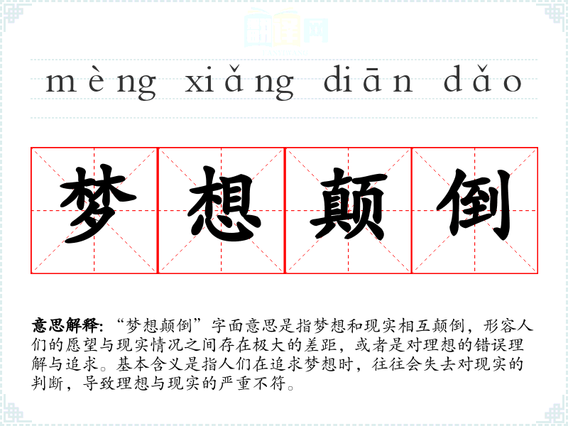 通过对“梦想颠倒”这一表达的学习,我深刻理解到理想与现实之间的关系,认识到在追求梦想过程中,保持理性的思考和实际的努力是多么重要。这不仅丰富了我的语言表达,也提升了我对生活的认知。