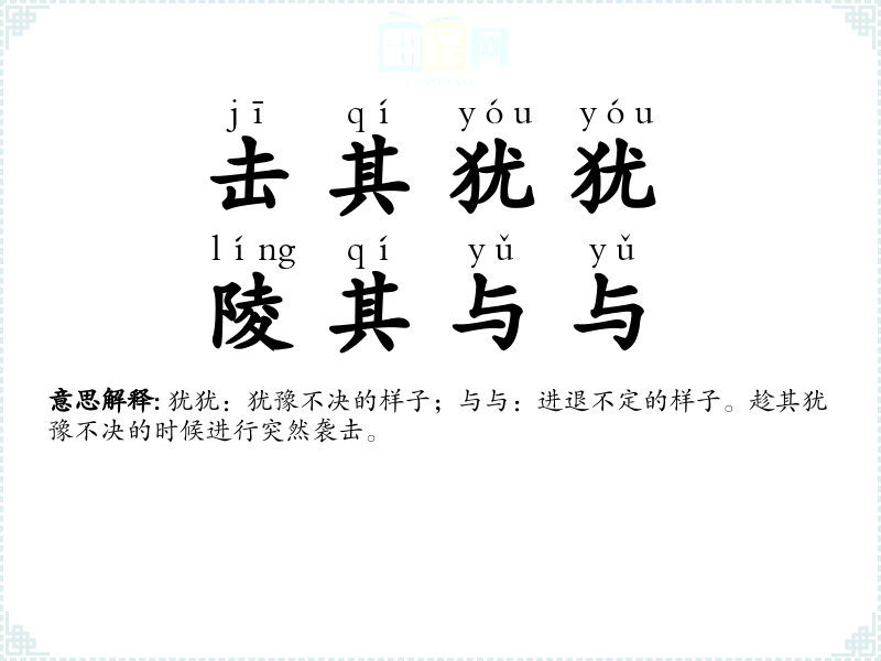 犹犹:犹豫不决的样子;与与:进退不定的样子。趁其犹豫不决的时候进行突然袭击。 |