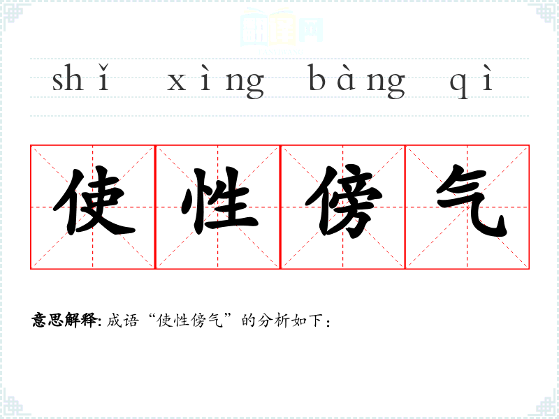 | 使性傍气 | 发脾气;撒气。同“使性谤气”。 |