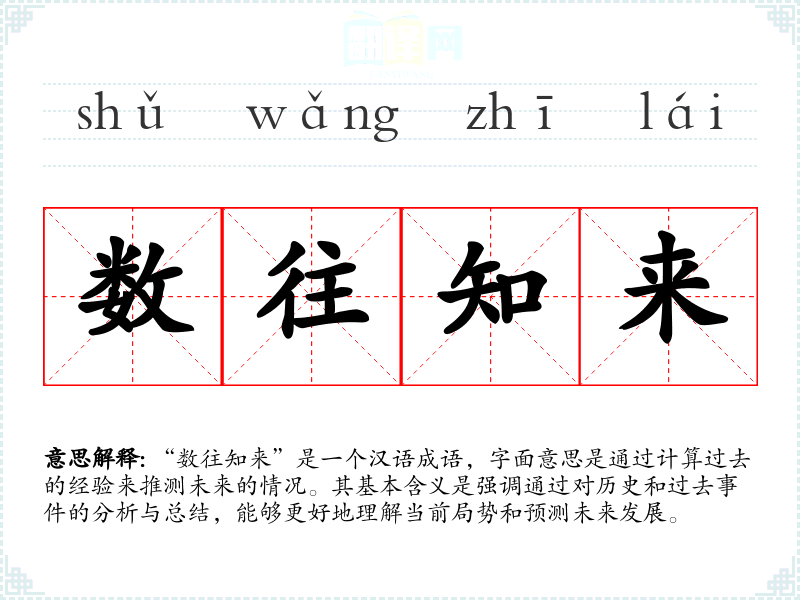 “数往知来”是一个汉语成语,字面意思是通过计算过去的经验来推测未来的情况。其基本含义是强调通过对历史和过去**的分析与总结,能够更好地理解当前局势和预测未来发展。
