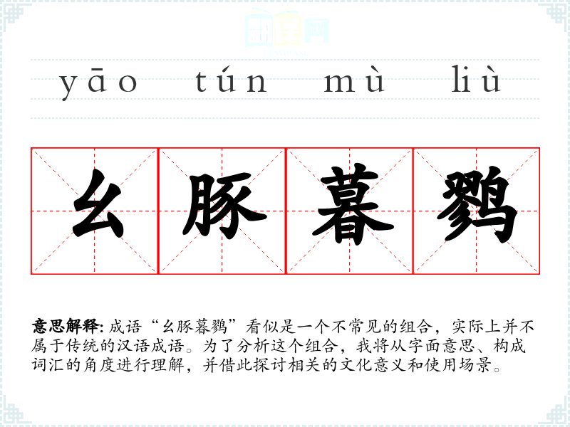 由于“幺豚暮鹨”并不是一个传统成语,因此没有明确的历史背景或文学出处。它可能是现代汉语中一种新创的表达,或者在某些特定的文化和文艺作品中有其特定的使用。