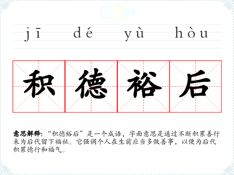 - 积德裕后是我们每个人的责任,只有这样才能给未来的社会带来更多的正能量。