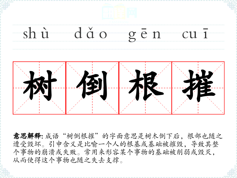 - 日常对话:在朋友间讨论某个项目失败时,可以说“如果基础不稳,最后只会是树倒根摧”。